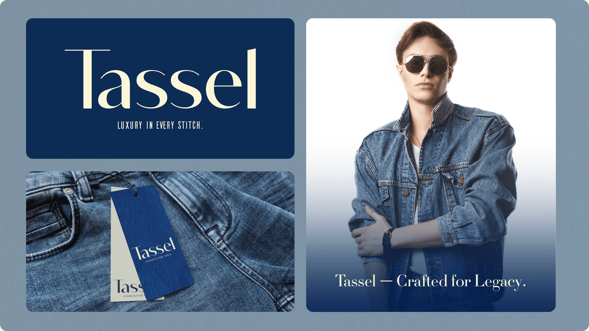 Tassel is a contemporary fashion brand built around craftsmanship, minimalism, and timeless design. The identity focuses on refined typography, a classic color palette, and a clean visual system that reflects understated luxury.